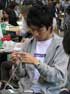 | 今年もいろいろな年代の方に参加いただきました。最初はおそるおそる編んでいてもだんだん手が馴れて上手になります。