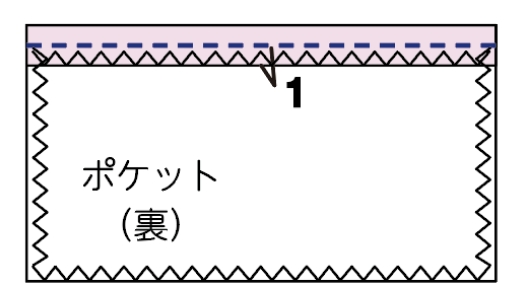2. ポケットの上部分を2cmで折り、アイロンをあてます。