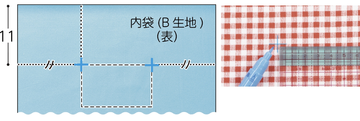 ポケット地(B生地) タテ19cm×ヨコ22cm