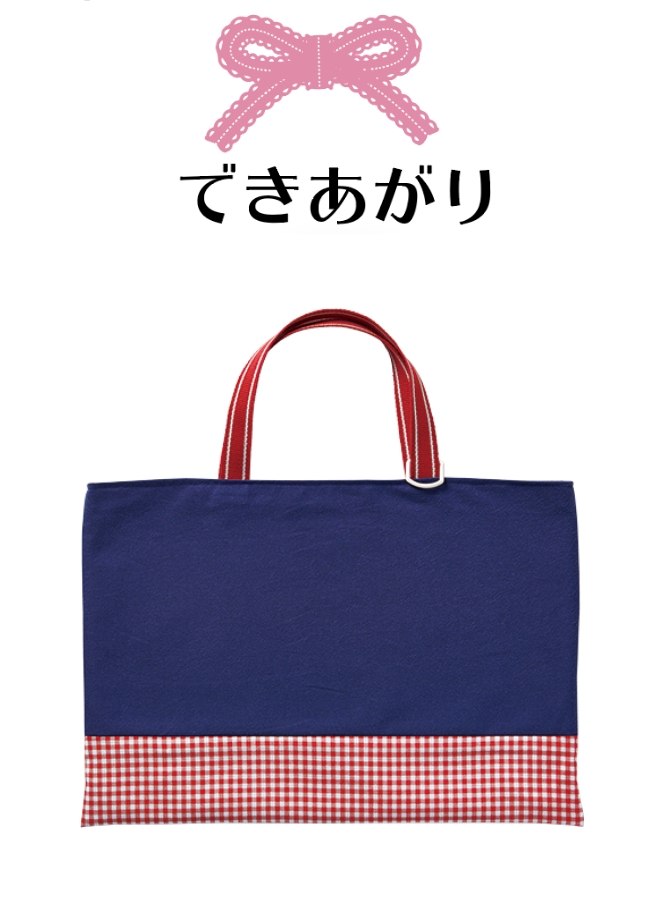 レッスンバッグとシューズケース(上ばき袋)、ティッシュケースの裁ち合わせ図です。幼稚園や小学校からサイズ指定がある場合は指定サイズで、指定がない場合は下記サイズを目安に作ってください。