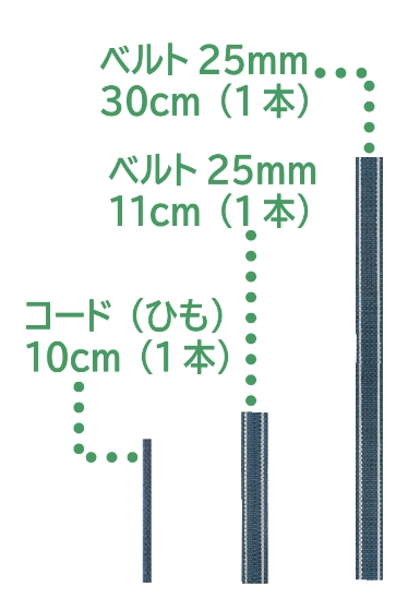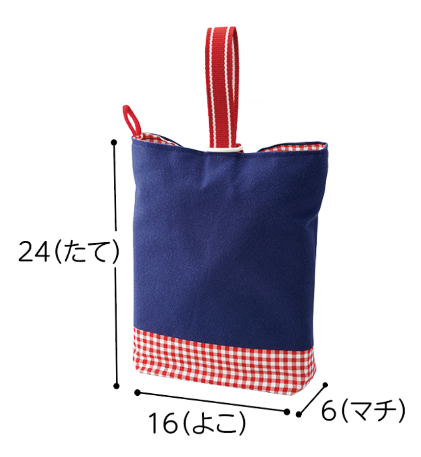 レッスンバッグとシューズケース(上ばき袋)、ティッシュケースの裁ち合わせ図です。幼稚園や小学校からサイズ指定がある場合は指定サイズで、指定がない場合は下記サイズを目安に作ってください。