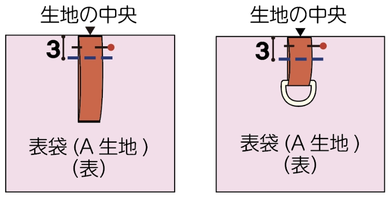 1. 表地(A生地)のベルトを付ける位置にしるしを付けます。
