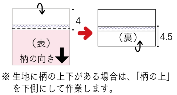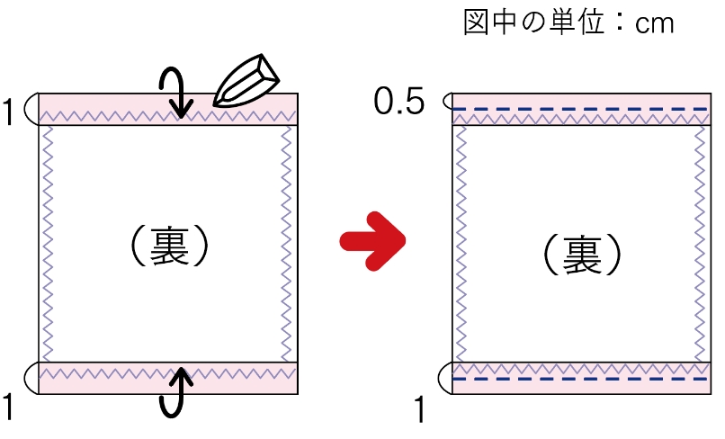 1タテ18cm×ヨコ12cmに生地を切ります。