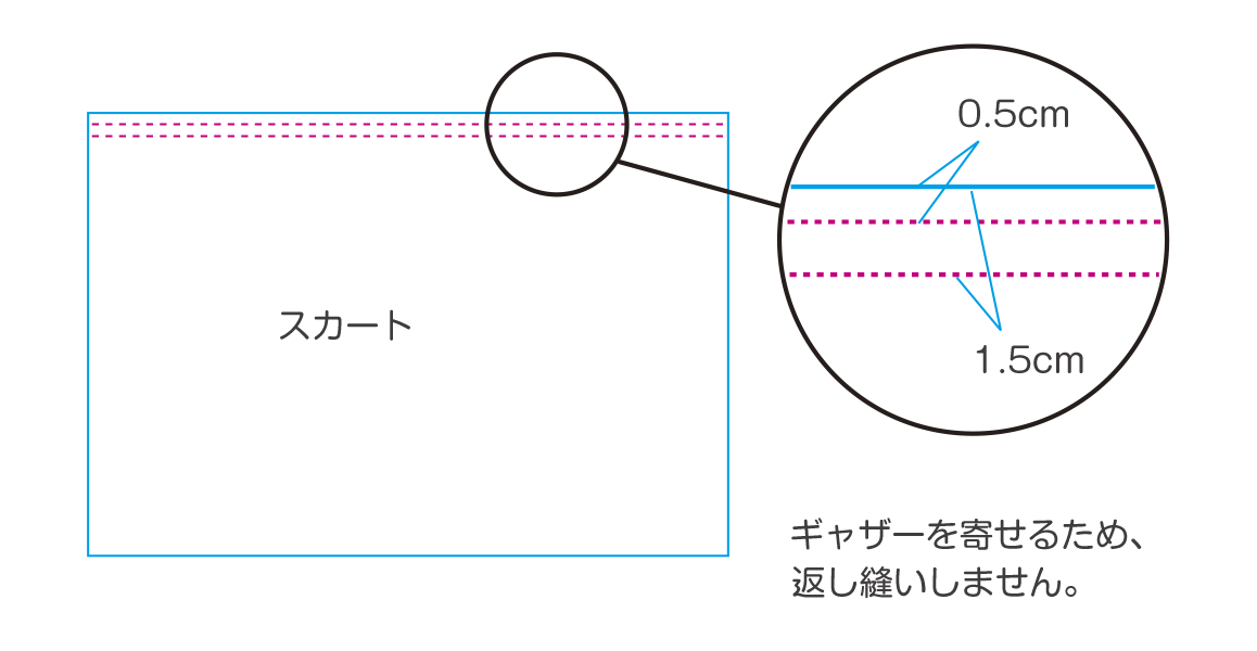 2-①スカートに粗ミシンをかけギャザーを寄せます。