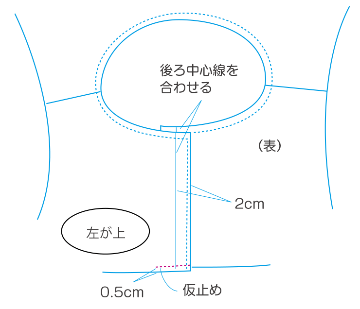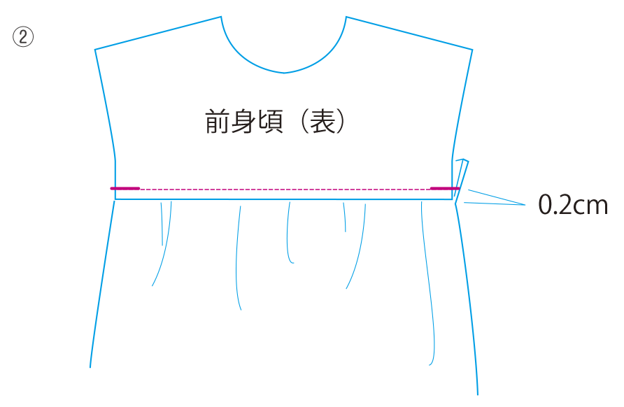 ②ぬいしろを身頃側に倒して表側から