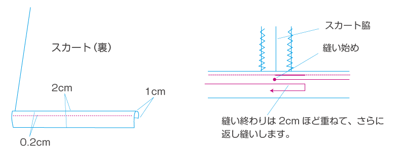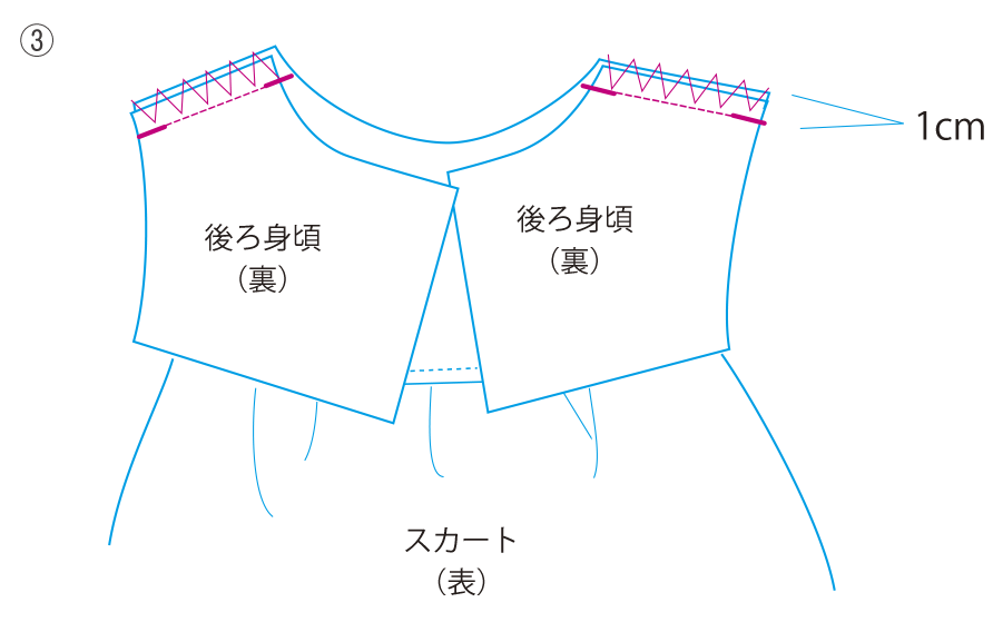 ②後ろスカートと合わせて縫います。