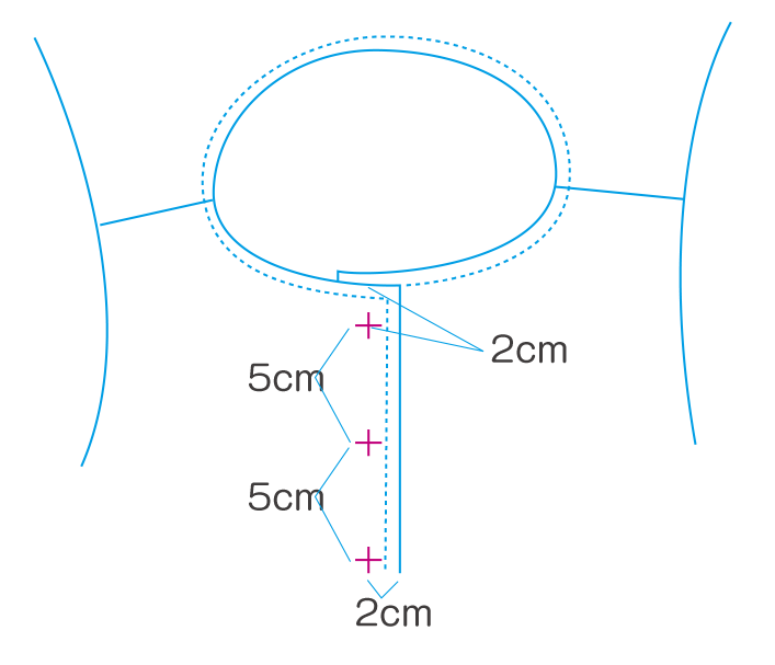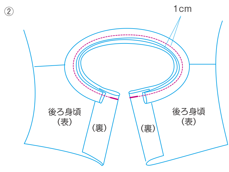 ②衿ぐりをぬいしろ1cmで縫います。