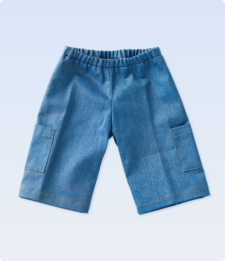 デニムの他、ツイル、ブロード、オックス、シーチング、ダンガリー、ストレッチ生地など、少しハリがあって扱いやすい生地がおすすめです。