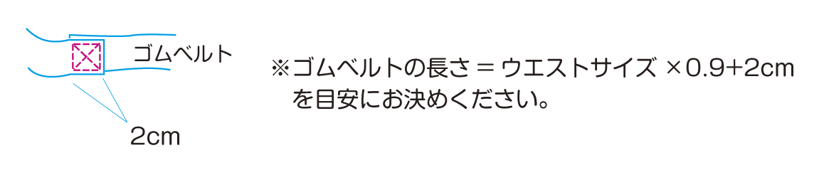 ※ゴムベルトの長さ=ウエストサイズ×0.9+2cmを目安にお決めください。