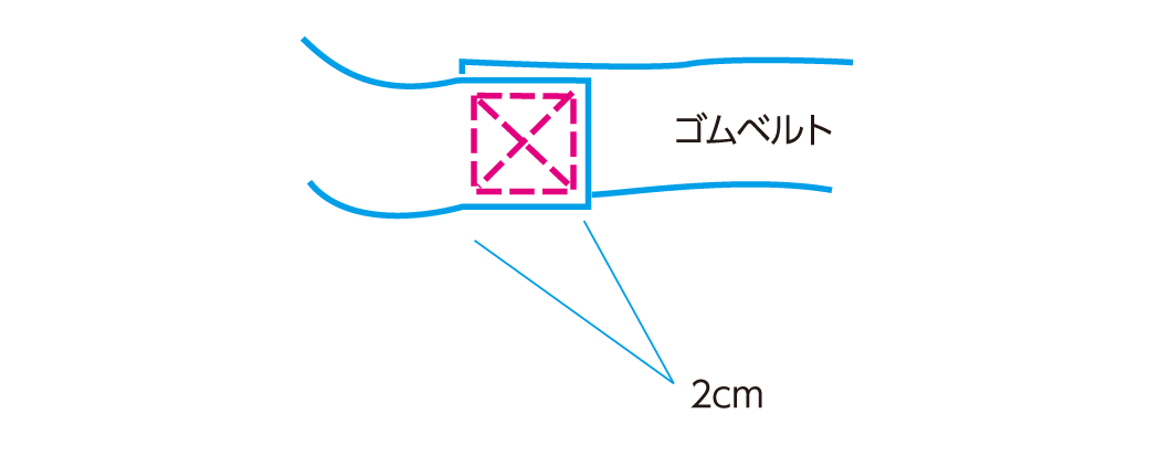 ゴムベルトの長さ=ウエストサイズ×0.9+2cmを目安にお決めください。