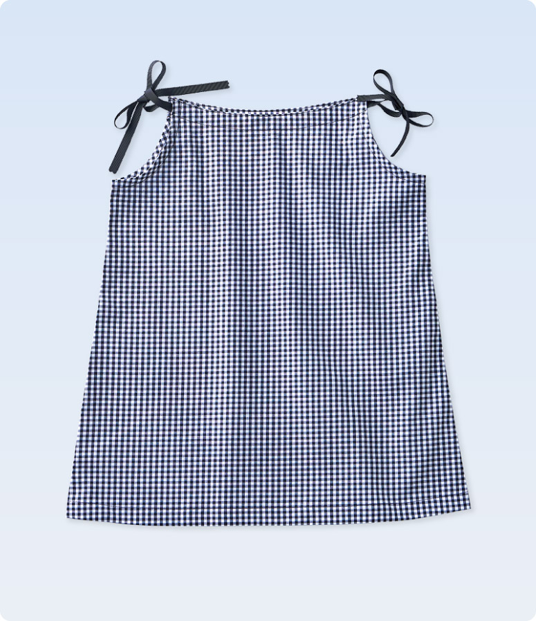 ギンガムの他、ダブルガーゼ、シーチング、ローン、ブロードなど薄手で扱いやすい生地がおすすめです。