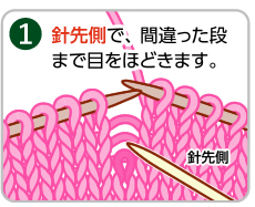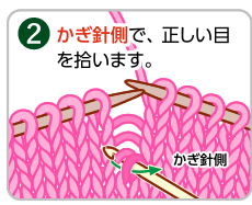 編み目を落とした時や 編み間違えた時など、かぎ針と棒針の針先が一緒になった