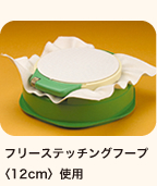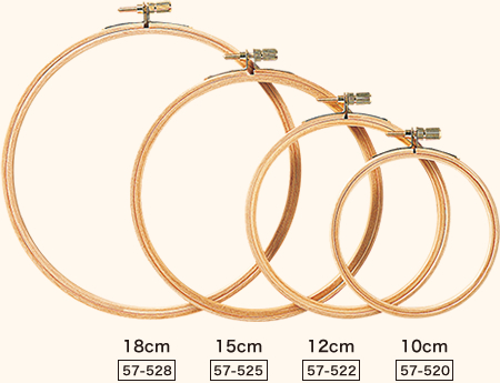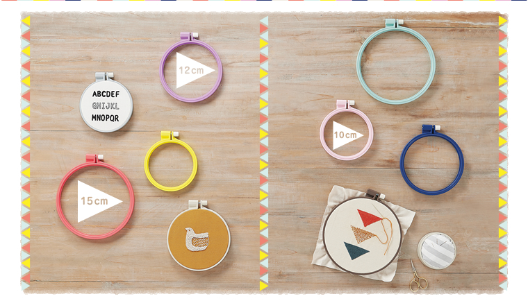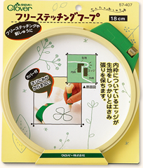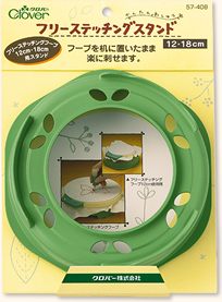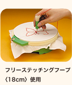 フープを机に置いたままで楽にステッチを刺すことができます。フリーステッチングフープ12cmと18cmがセットできます。