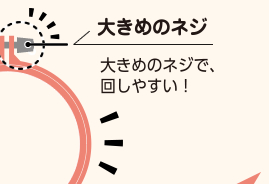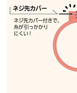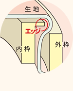 内枠に付いているエッジが生地をしっかりはさみ、張りを保ちます。ネジに糸がかまらないカバー付です。