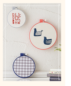 手元で360度回転するフープ(刺しゅう枠)。裏向けが簡単で糸の始末やステッチの確認に便利。生地をしっかりはさみ、張りを保ちます。