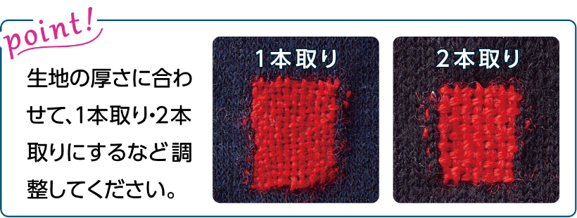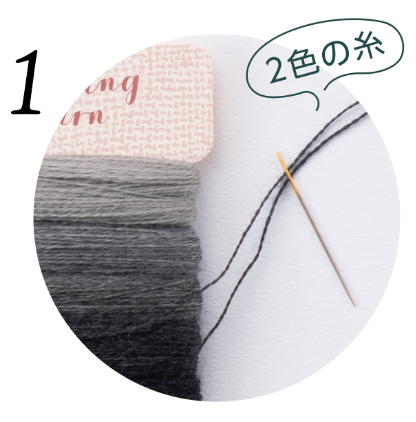 補修したい衣類の色に近い、異なる2色の糸をあわせて使います。
