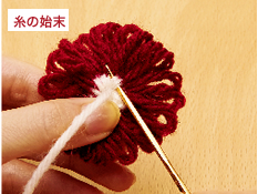 一周かけ終わったら、糸を10cmほど残してカットし、かけはじめの糸と結んでとめておきます。 |
