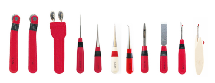 しるし付け(穴あけ)、袋物、えり先などの角出し、ミシンの布送り、小さなチェーンの穴を広げる作業に便利です。先が砲弾型にとがっているので、布通りがスムーズです。