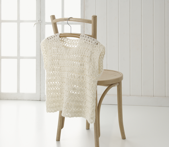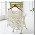 中央に3本目のピンを立てると、編み目がきれいに揃います。ピンに穴があいているので編み地に別糸が通せます。編み地同士をつないだりギャザーを作るなど、アレンジするのにとても便利です。