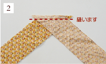 ![]() 作品の大きさに合わせて、長さのあるバイアステープを作る場合は縫い合わせます。 |