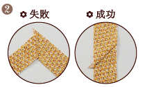 ![]() テープの向きを間違えると、まっすぐなバイアステープになりません。 |