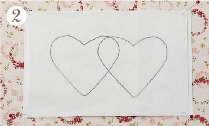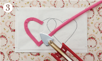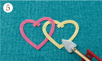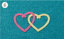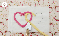 ![]() ハートが2個できたらシリコンペーパーからはずし、台生地にこてで仮接着します。 |