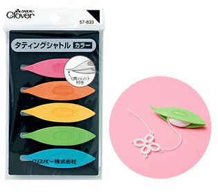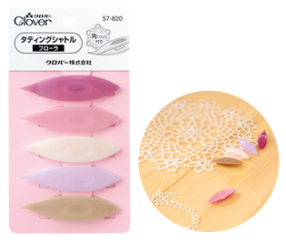 タティングシャトル〈フローラ〉 編み糸を引き出してつなぐときに便利な角(ツノ)付きです。 やさしいフローラルカラーの5色セットです。 |