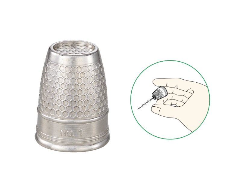 針を押したり、針先の向きを変えたりと、用途に応じて機能的なシンブル。